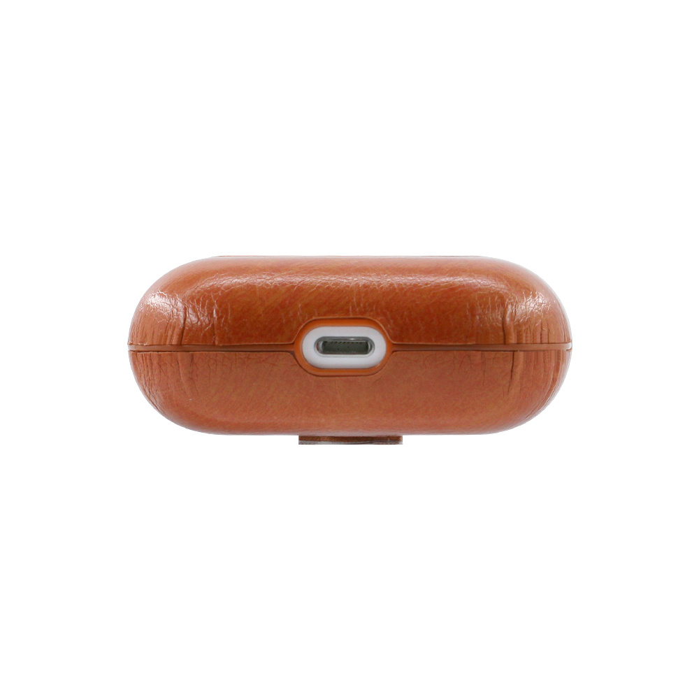 Apple Airpods 1 en 2 Lederlook Case - Leer - Hardcase - Sleutelhanger - Kunstleer - Apple Airpods - Lichtbruin