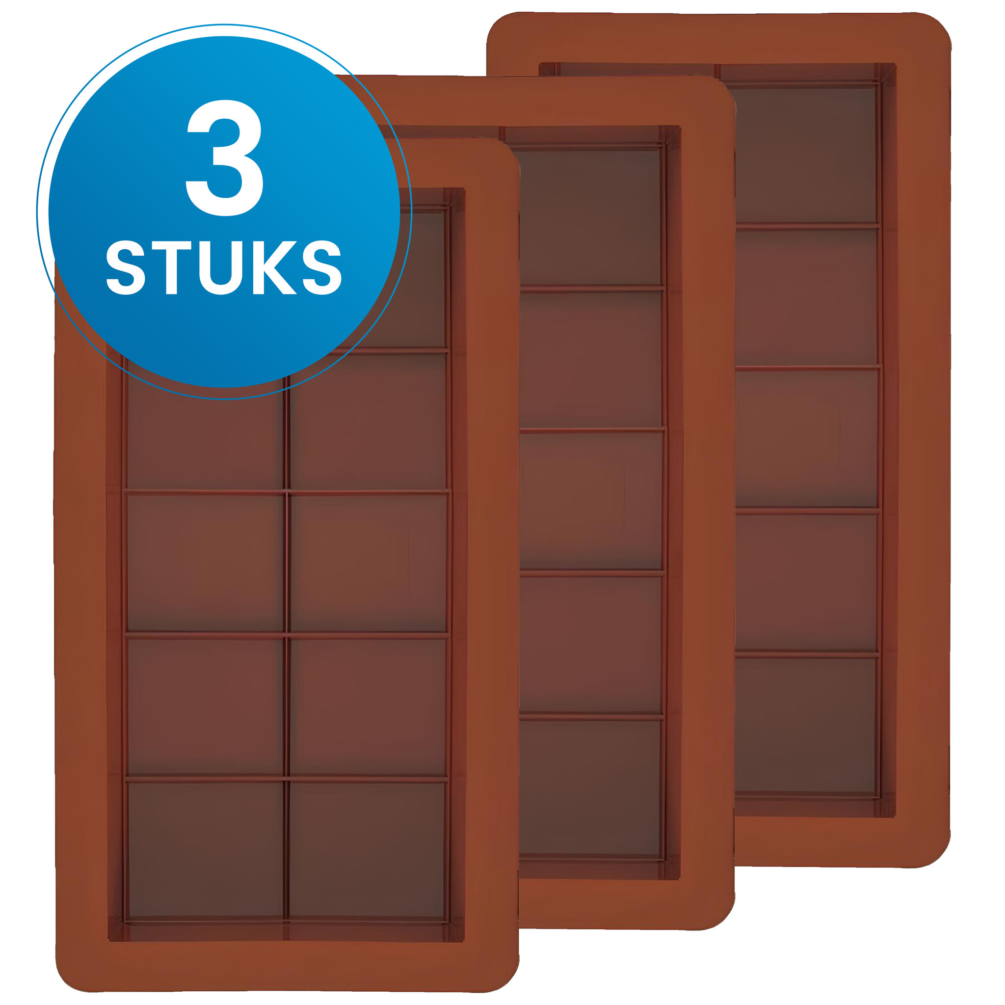 Chocoladereep Vormen - 3 Delige Set - Siliconen - Chocoladevorm - Chocolade Mal - Bakvorm Chocolade - Chocolade tablet - Flexibel & BPA-vrij - Oven- en Vriezerbestendig - Herbruikbaar - Bruin
