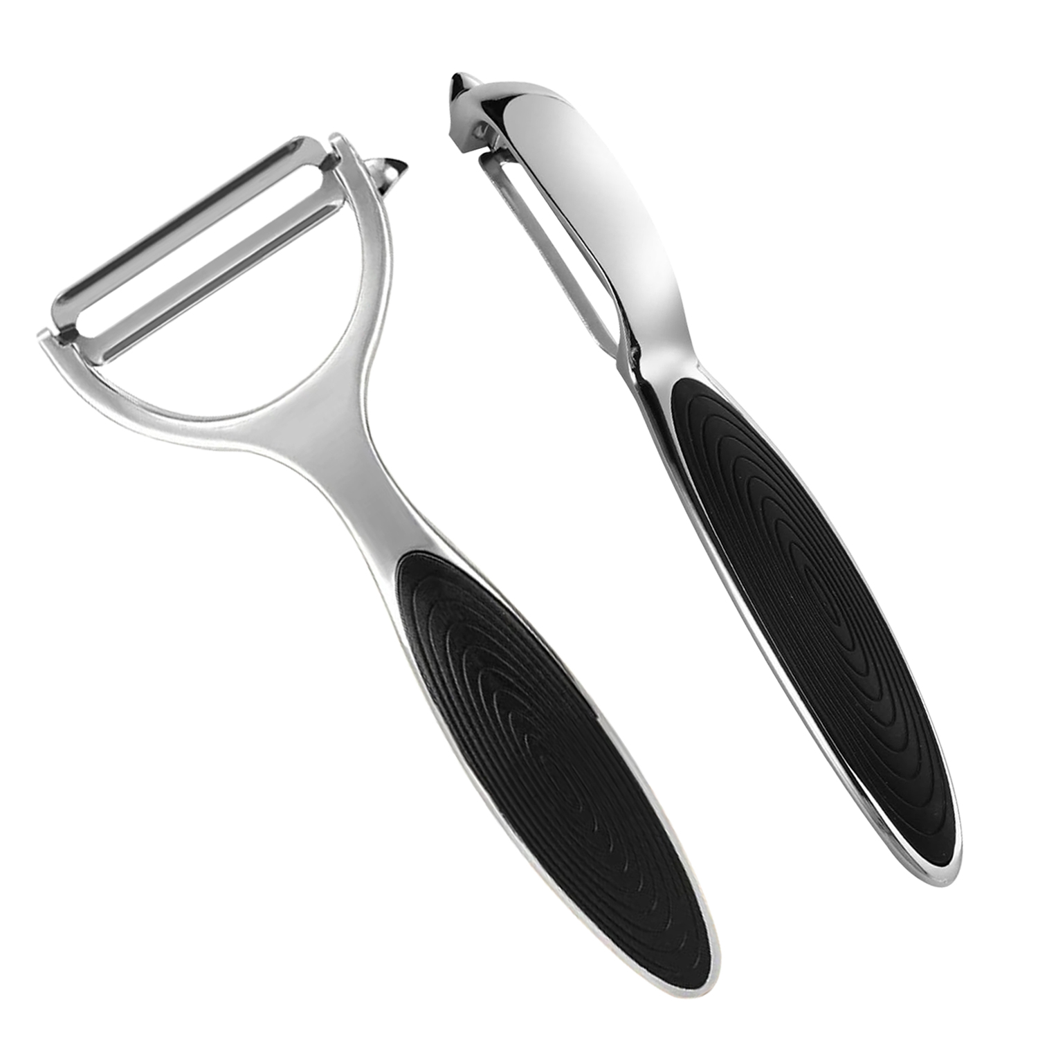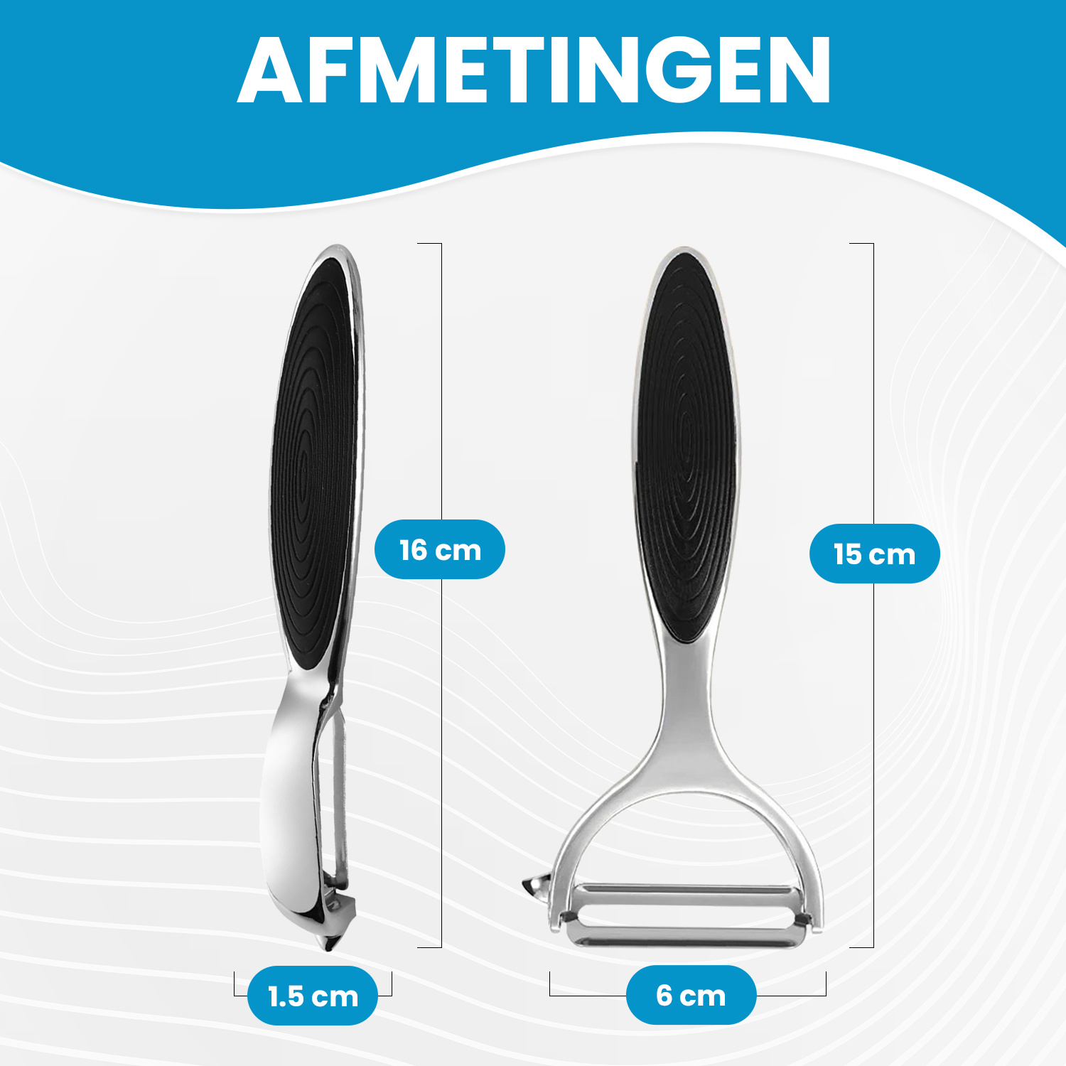 Maak koken makkelijker en sneller met deze 2-delige dunschiller set, bestaande uit een I-model en een Y-model. Beide schillers zijn gemaakt van hoogwaardig roestvrij staal, scherp en volledig bestand tegen roest. Dankzij de antislip handvatten heb je een comfortabele grip en optimale controle bij het schillen van aardappelen, groenten en fruit.