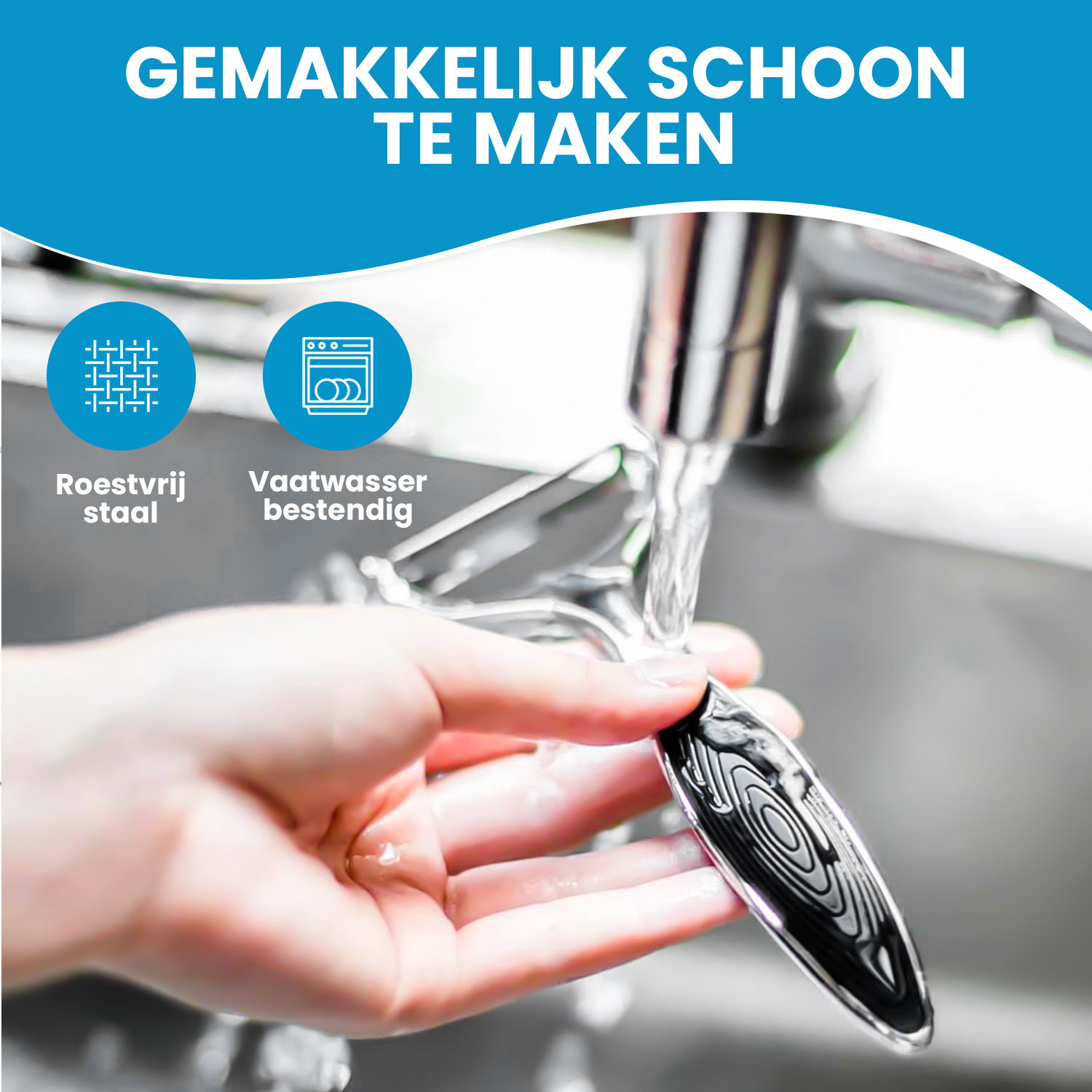 Na gebruik kun je beide schillers makkelijk in de vaatwasser reinigen. Het RVS-materiaal is hygiënisch en geschikt voor dagelijks gebruik, zodat je lang plezier hebt van deze set.