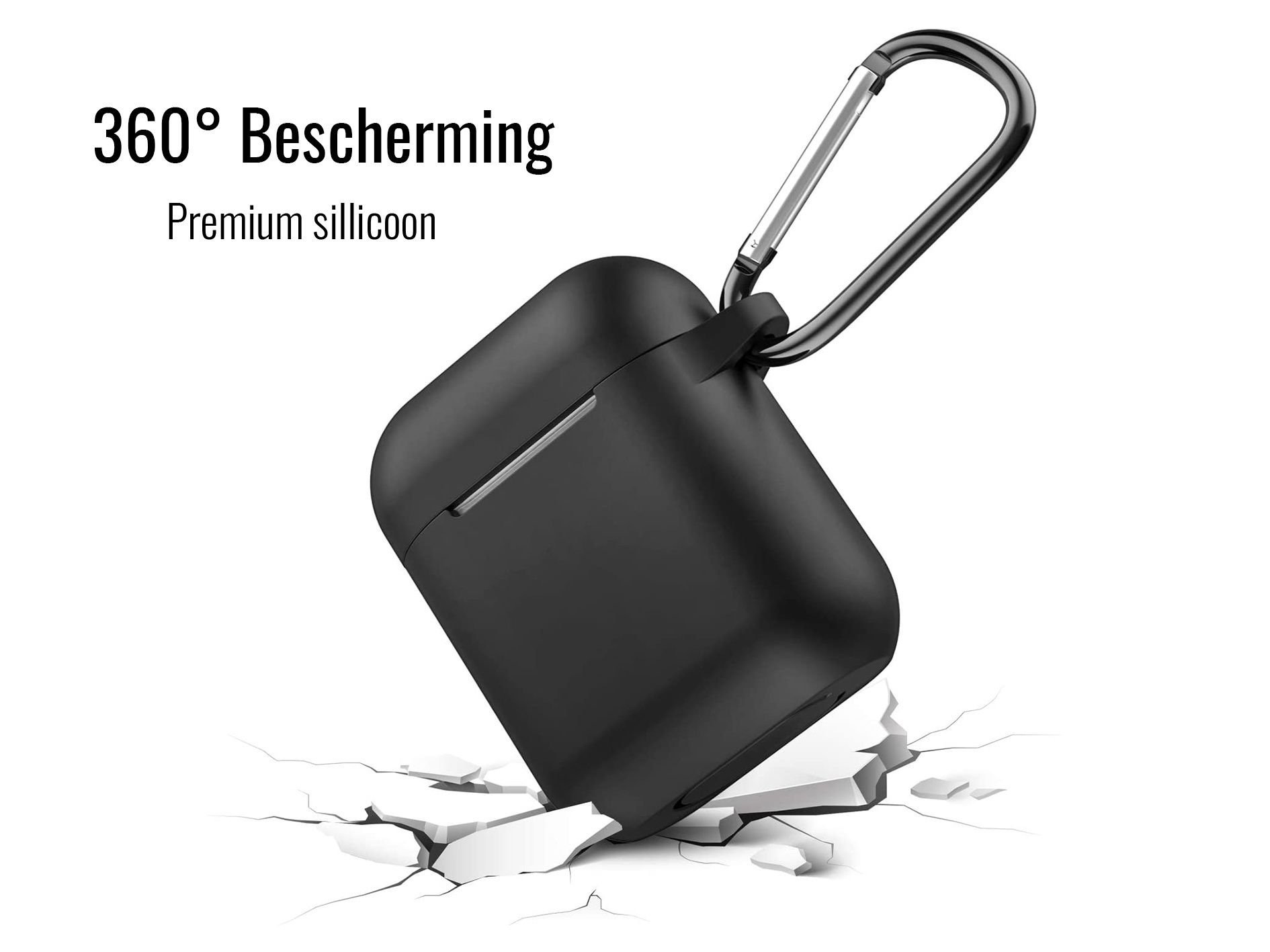 Hoesje geschikt voor Airpods 1 en 2 - Softcase - Sleutelhanger - Cover - Extra dun - Siliconen - Zwart