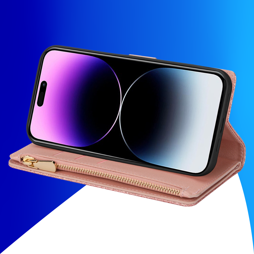 Pluspunten van dit bookcase hoesje geschikt voor iPhone 15 Pro