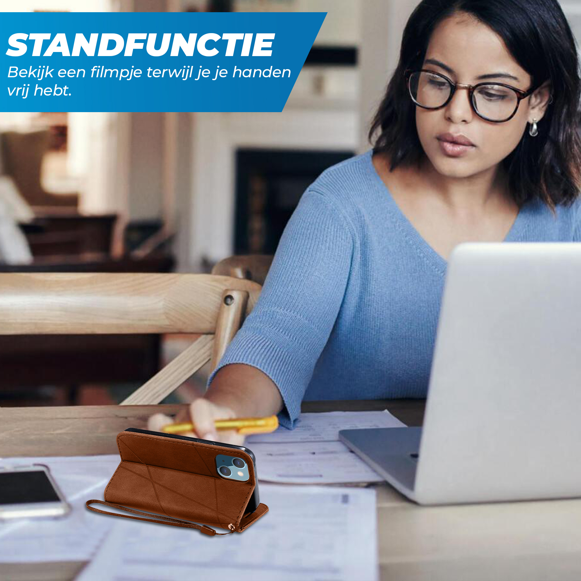 Pluspunten van dit bookcase hoesje geschikt voor iPhone 16 Pro