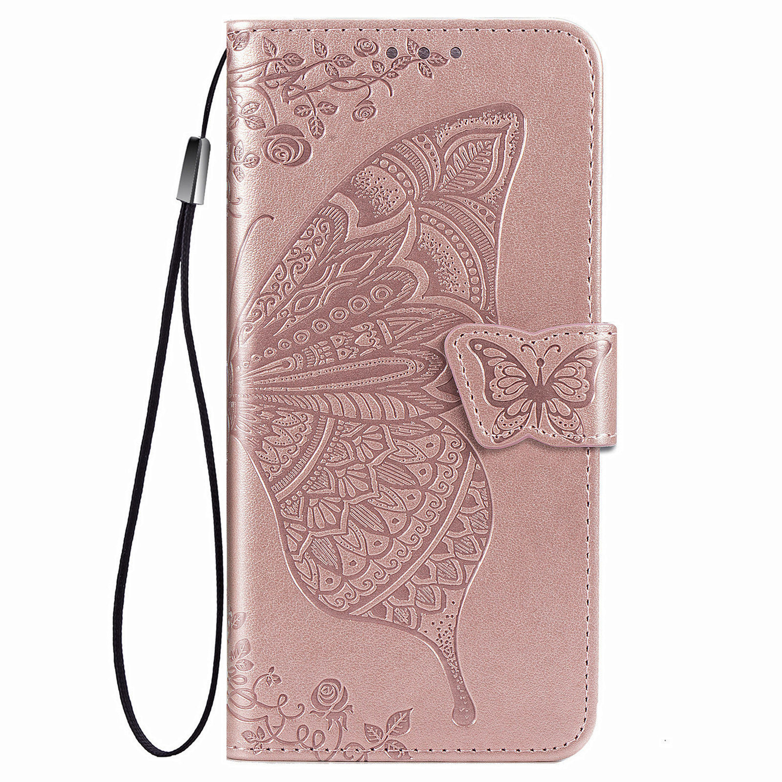 iPhone 7 hoesje - Bookcase - Pasjeshouder - Portemonnee - Vlinderpatroon - Kunstleer - Rose Goud