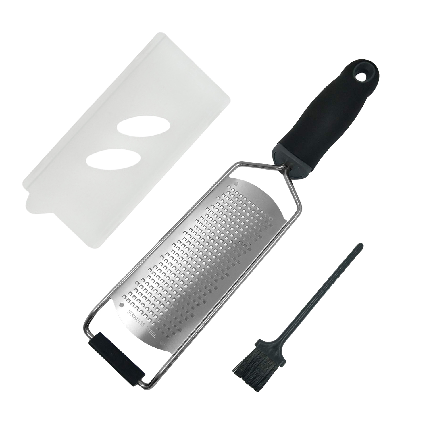 De handrasp is gemaakt van RVS dat stevig is en bestand tegen roest. Dankzij de meegeleverde beschermhoes en schoonmaakborstel kun je de rasp veilig opbergen en eenvoudig reinigen.