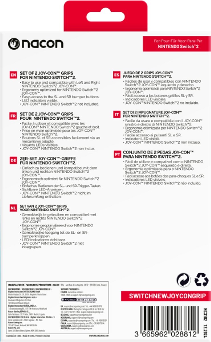 Nacon Nintendo Switch 2 Joy-Con Grip Set (Rood/Blauw)