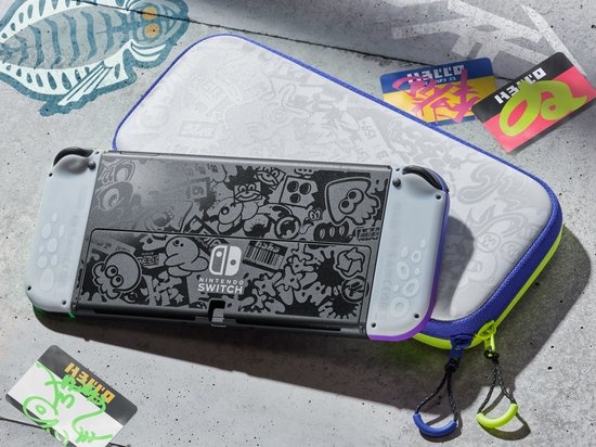 Deze op maat gemaakte Nintendo Switch consolehoes is ontworpen ter bescherming van je Nintendo Switch en OLED-systeem.- De Splatoon 3 consolehoes voor de Nintendo Switch bevat een speciaal ontworpen binnenvak waar je maximaal vijf Nintendo Switch-gamecards en twee Joy-Con-polsbandjes in kunt bewaren.