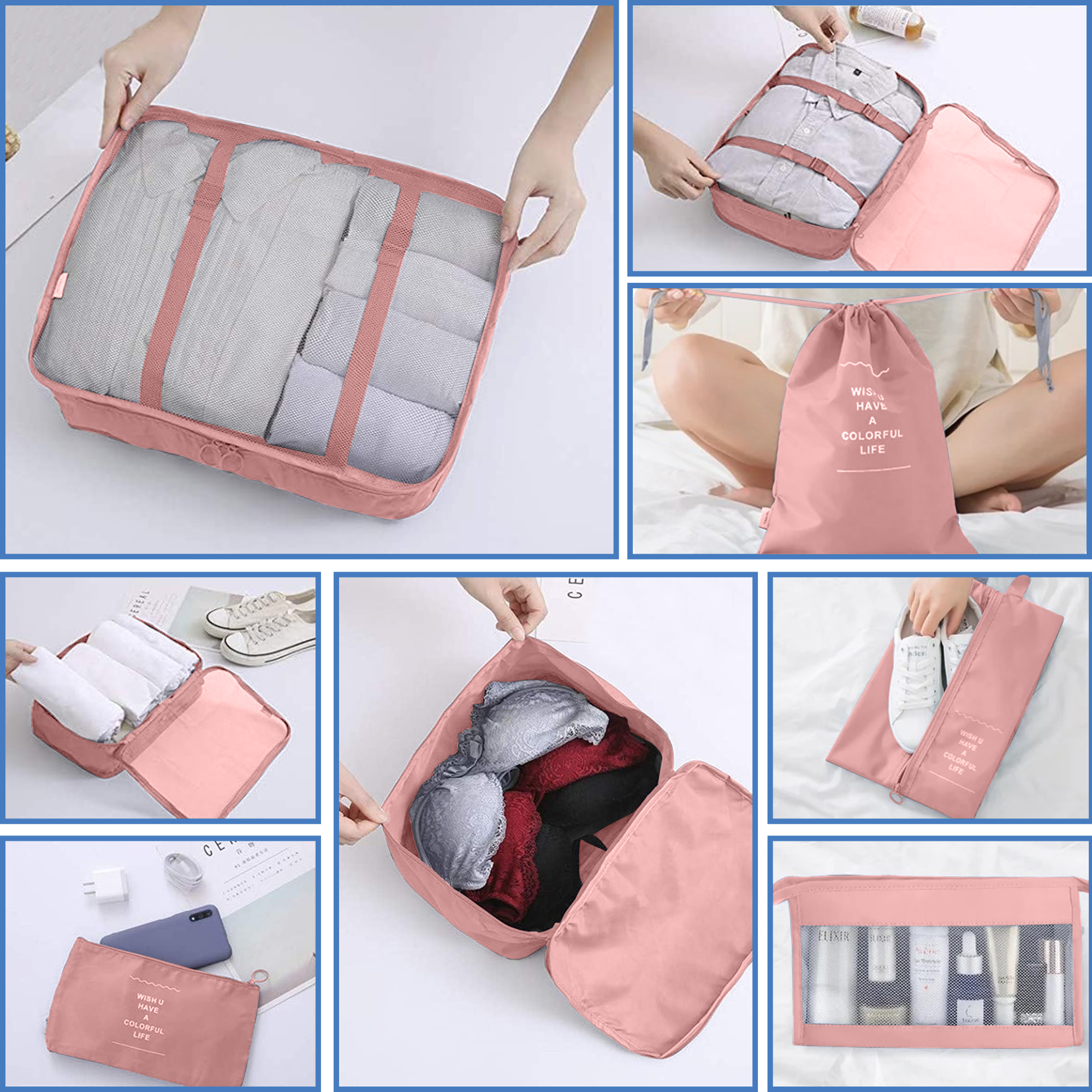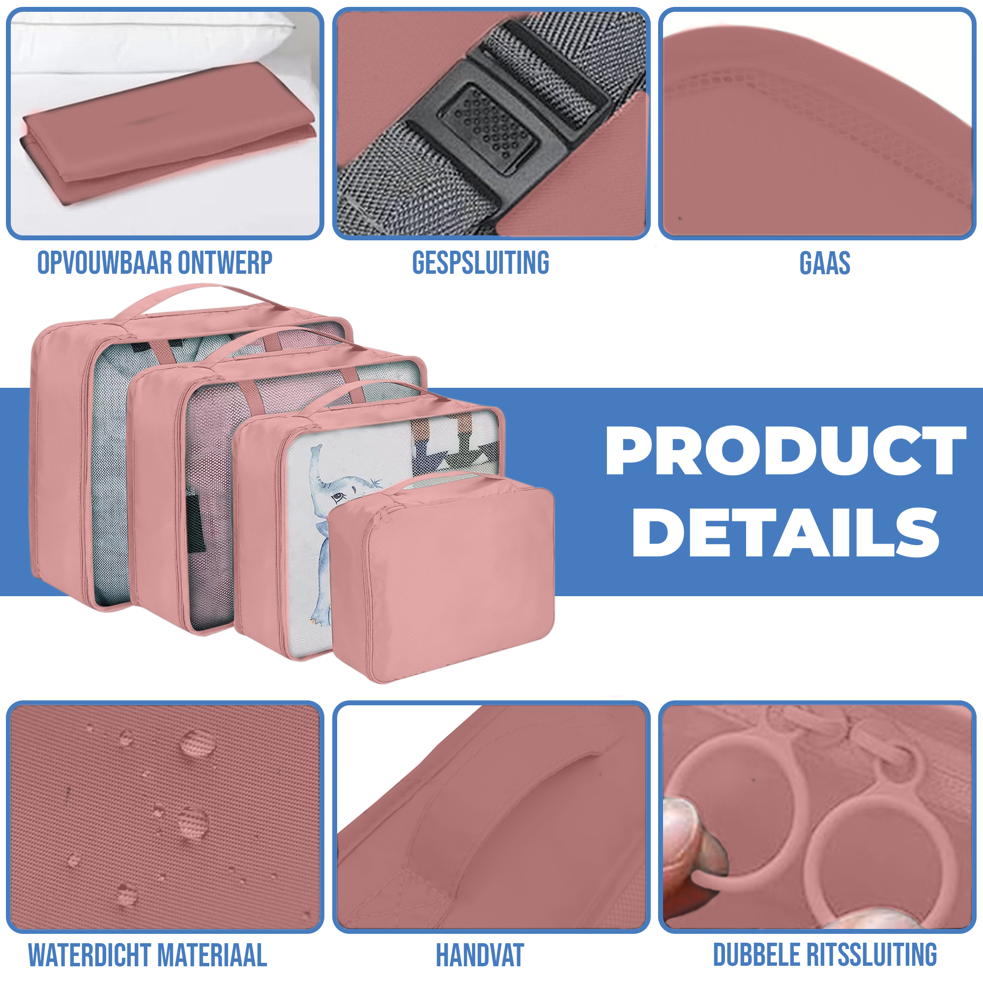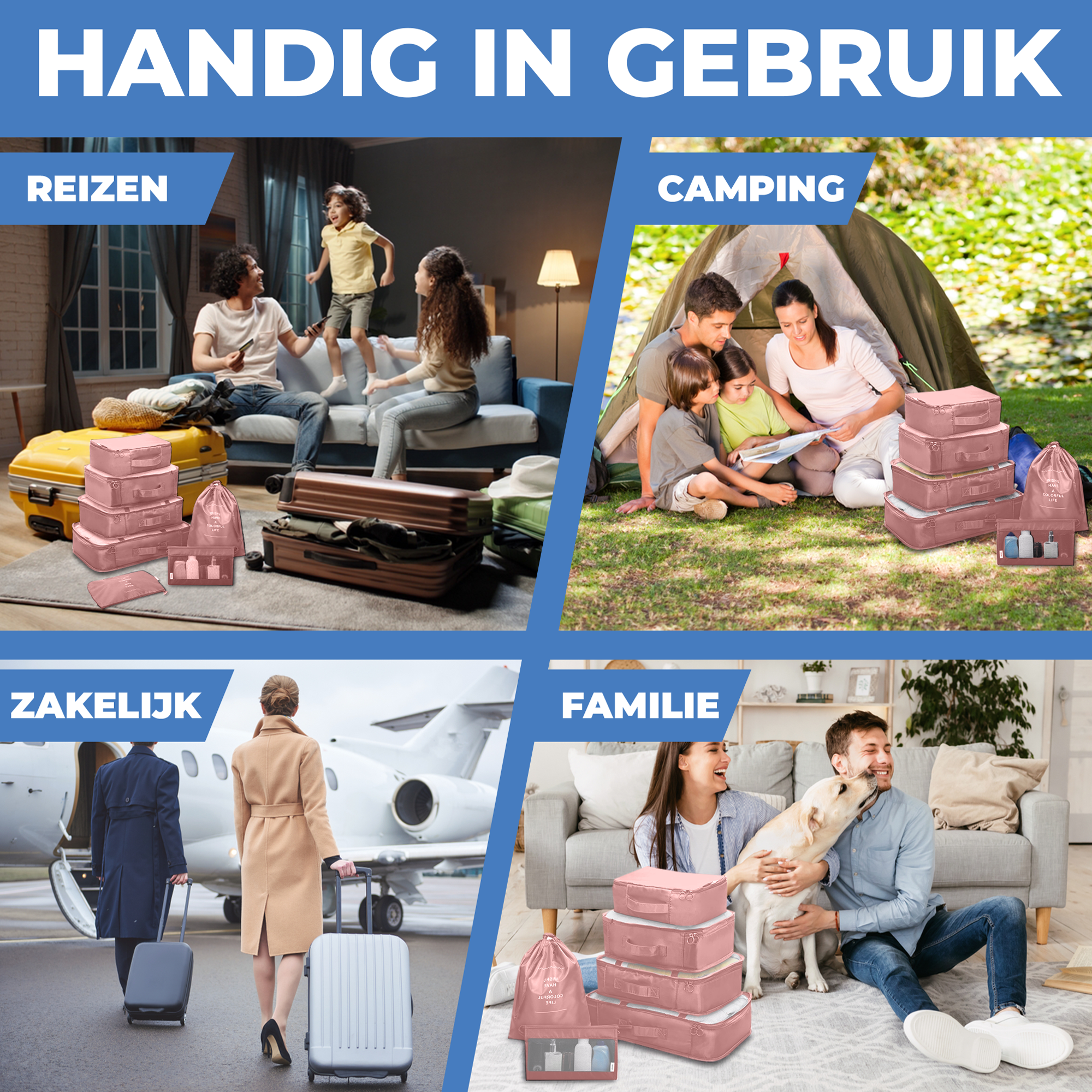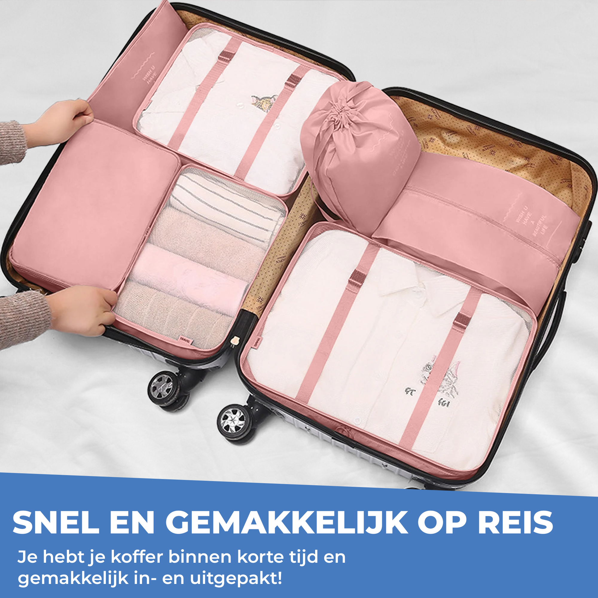Packing Cubes - Koffer Organizer Set - 8-delig - Kleding en Bagage Organizer - Travel Cubes - Reis Accessoires - Voor Tassen en Backpacks - Roze