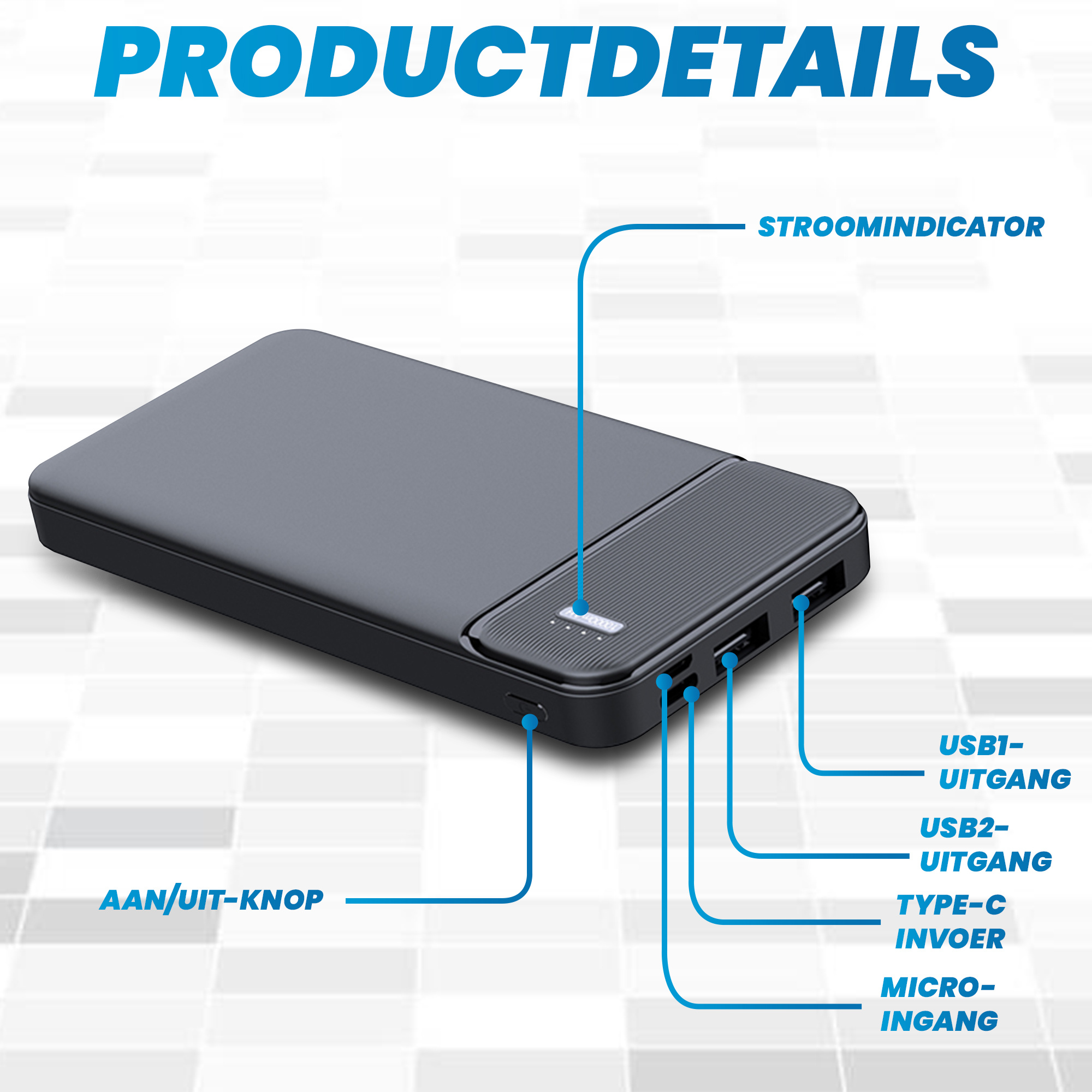 - Capaciteit van 10.000 mAh