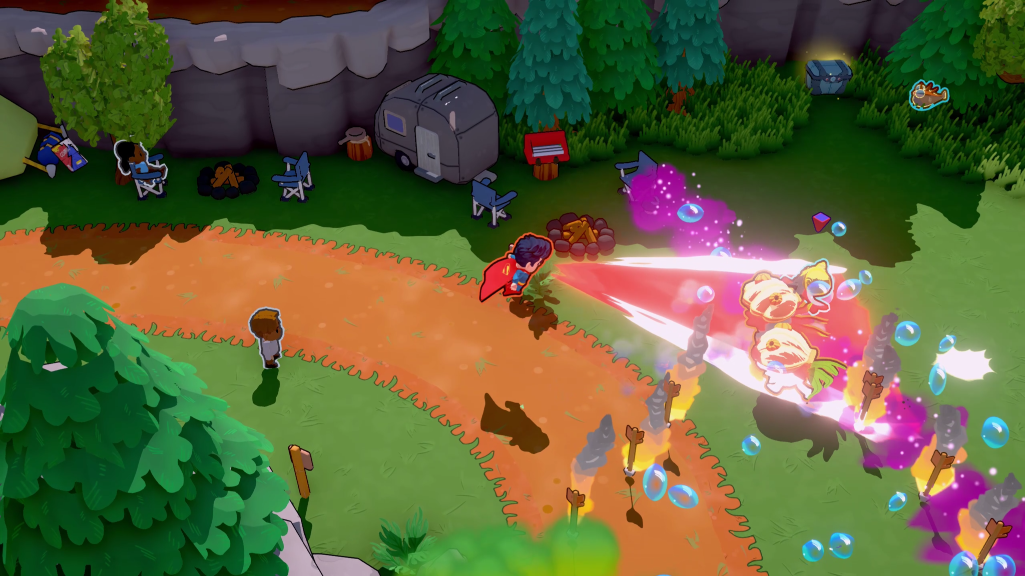 •Word de held van Happy Harbor: gebruik ontgrendelbare elementaire aanvallen plus iconische acties en pantser, waaronder Supermans Heat Vision, Wonder Womans Truth's Pull en de ontploffende Batarangs van Batman.