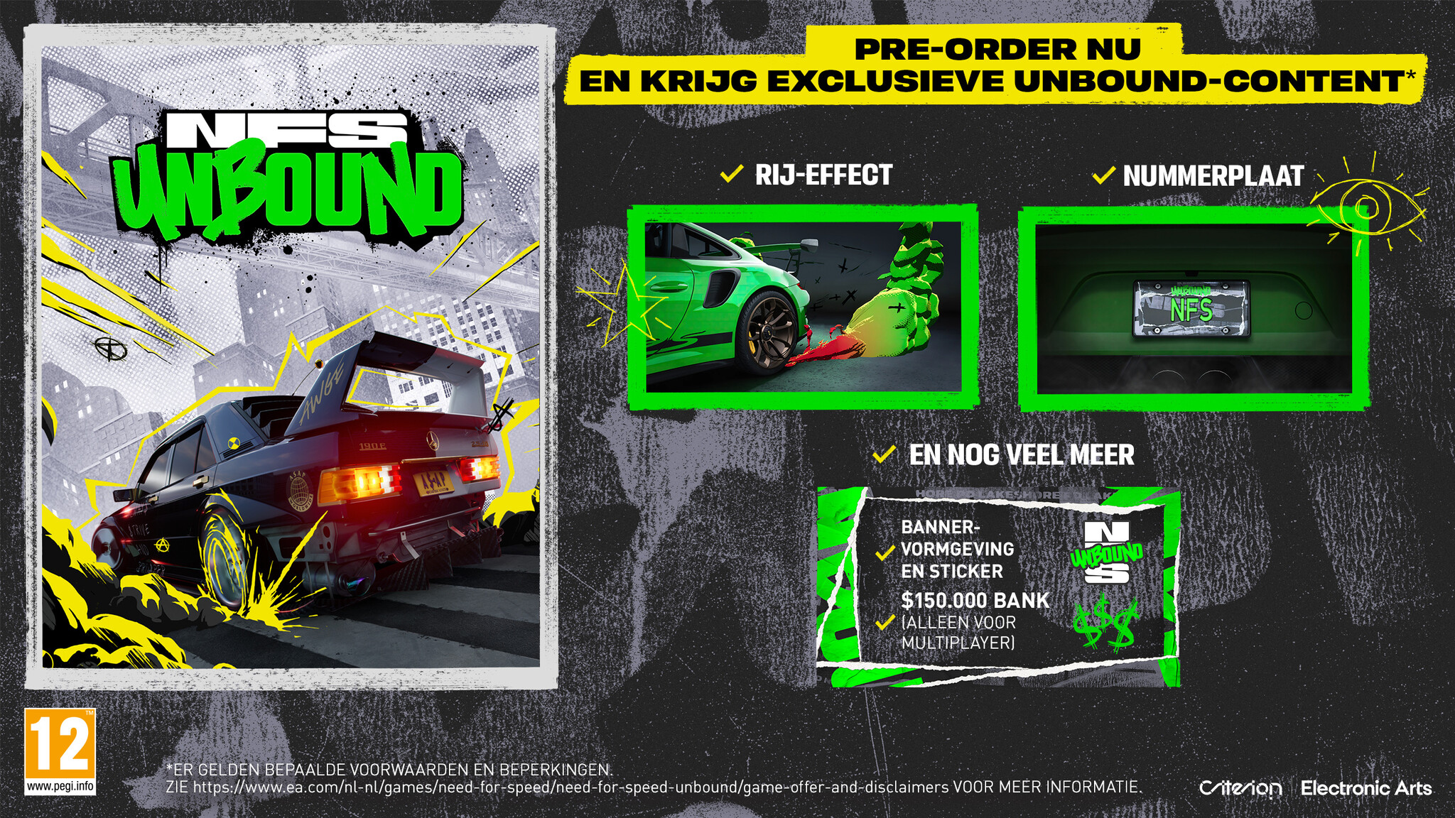 Graffiti komt tot leven in Need for Speed™ Unbound met een gloednieuwe, unieke visuele stijl die elementen van de modernste straatkunst combineert met de meest realistische wagens in de geschiedenis van Need for Speed™. Krijg toegang tot een gloednieuwe toolkit met krachtige beeld- en geluidseffecten die laten zien hoe goed je kunt rijden, inclusief Burst Nitrous, een nieuwe boost-tactiek die duizelingwekkende snelheid levert.
