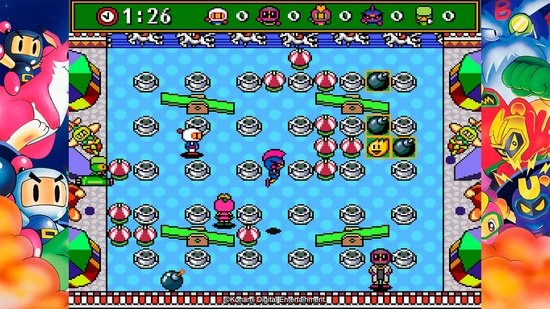 Speel de Japanse, Amerikaanse en Europese releases van SUPER BOMBERMAN 1–5, aangevuld met de originele Bomberman en Bomberman II. Een volledige tijdcapsule van de serie.