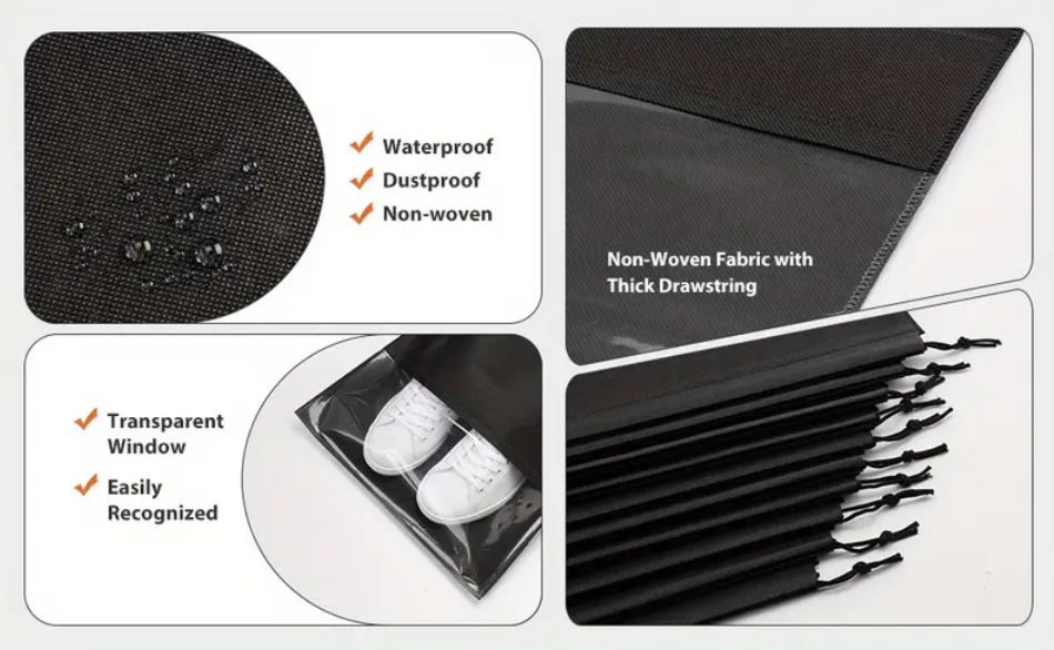 Schoenenzakken - 10 Stuks - Schoenentas - Reistas en Opbergtas - Waterafstotend - Travel Organizer - Zwart