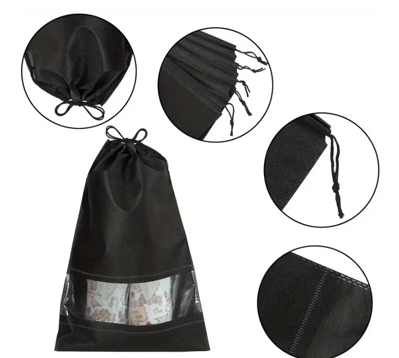Onze JVS Products schoenenzakken zijn gemaakt van hoogwaardig, waterafstotend materiaal dat je schoenen beschermt tegen vocht en vuil. Met deze uitgebreide set van 10 heb je volop opbergruimte voor al je schoenen, kleding en accessoires. Deze zakken bieden de perfecte bescherming, zowel thuis als onderweg, en zijn sterk en duurzaam, zodat je ze keer op keer kunt gebruiken zonder slijtage.