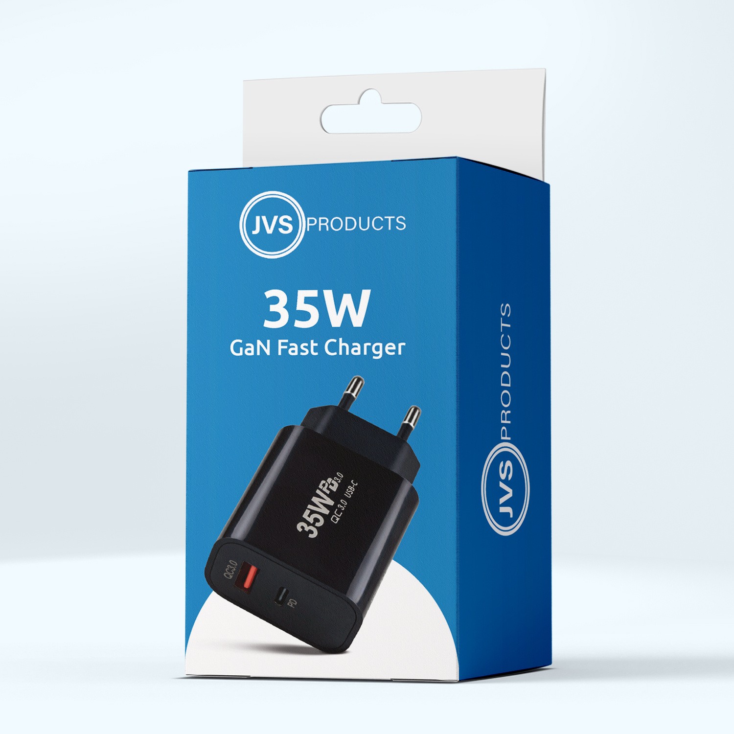 Laad al je apparaten snel en efficiënt op met de JVS Products Snellader 35 Watt. Deze compacte USB-C adapter is perfect voor smartphones, tablets en andere apparaten.