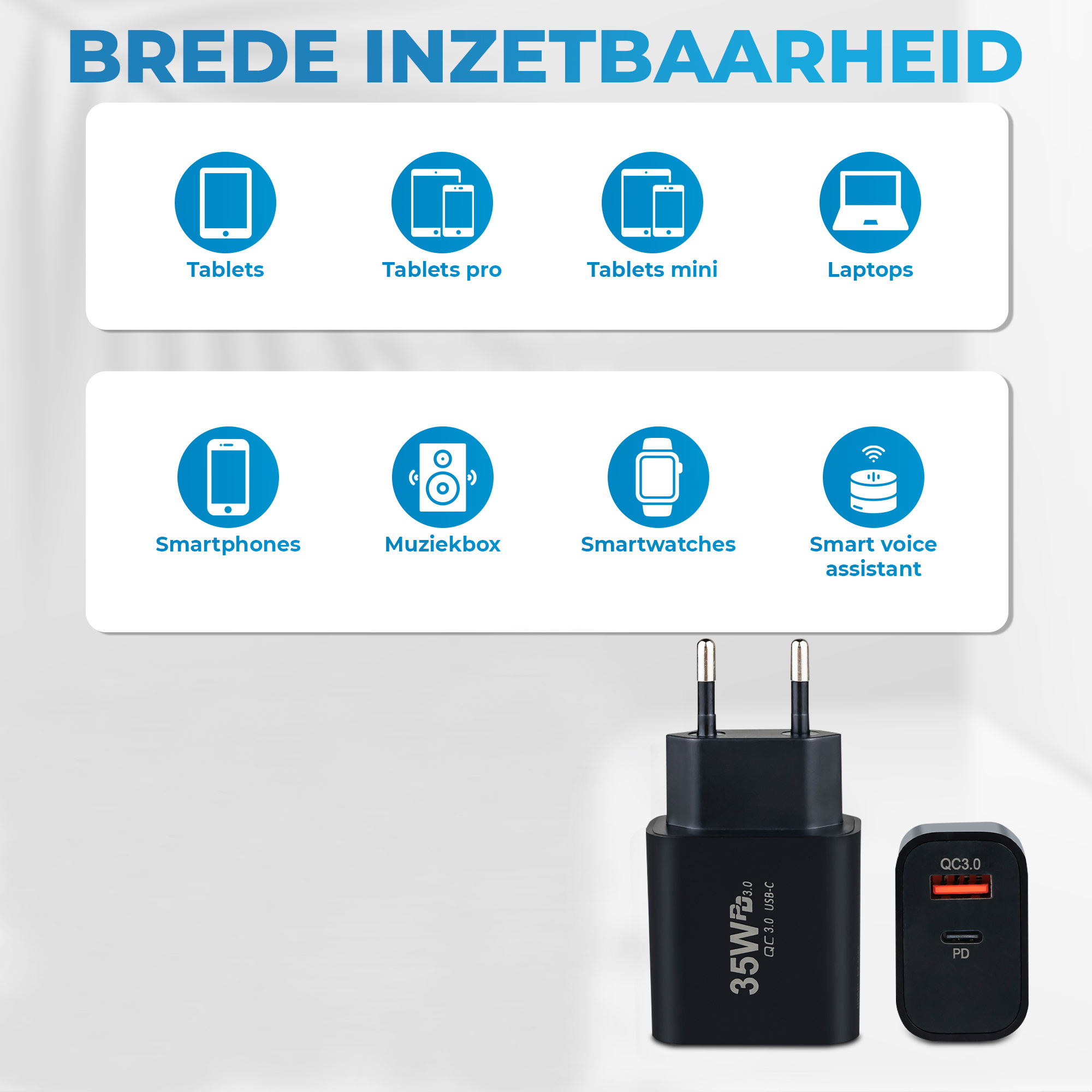 - USB-C PD 35 Watt: Ideaal voor het snel opladen van smartphones, tablets en smartwatches